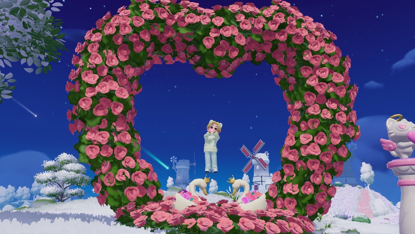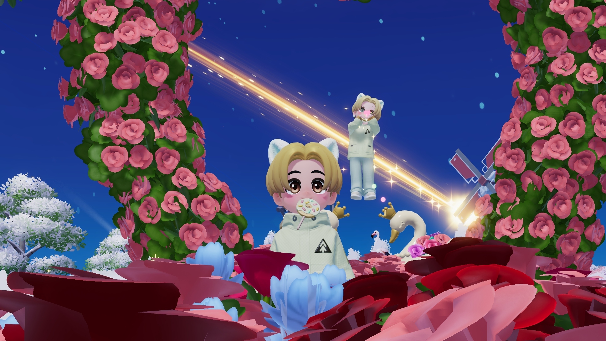 バラの中で
